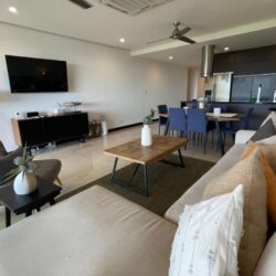 El condominio cuenta con 3 elegantes habitaciones y 3 baños, una amplia terraza con sistema de toldos electrónicos, aires acondicionados y cortinas de última generación, cuidadosamente seleccionados para ofrecer el máximo confort y estilo. Incluye además bodega privada y parqueo techado para dos vehículos.